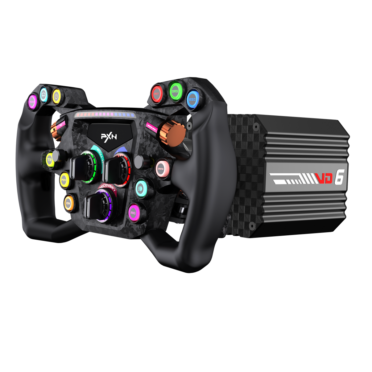 • It pairs the PXN VD6 Direct Drive Wheel Base, delivering 6 Nm sustained (7 Nm peak) torque via a 20-pole low-inertia motor with 24-bit magnetic encoding, proprietary PXN Sense+ force feedback optimization, and intelligent active cooling for consistent, lifelike steering response with the 300 mm PXN GT ONE Wheel.